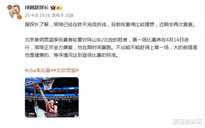 随着此次拆线,周琦大概率将很快投入到球队合练当中,全力为比赛做好准备。相信在接下来的北京德比大战中,周琦定能延续出色表现,助力北京男篮向冠军宝座发起强有力的冲击。